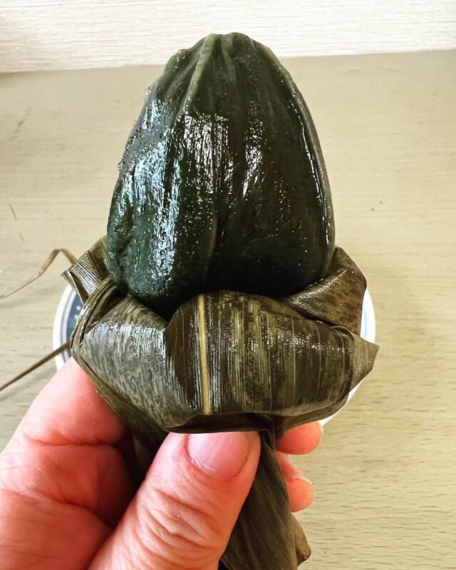 笹団子の生地は越後米のもち粉等を独自にブレンドした粉を使用し、初春の新芽のヨモギをふんだんに入れ、生地につきあげます。ほどよくつき上げた生地に餡を包み、1つ1つ3枚の笹にくるみスゲで縛り上げます。高圧な蒸し窯で蒸し上げた笹団子は、柔らかくコシのある「昔懐かしい田舎のおふくろの味を思い出す」と、お客様から好評をいただいております。