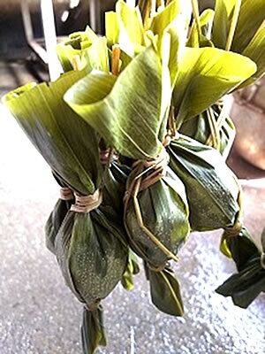 ちまきは、厳選された越後村上の山中で採れた良質な大きく鮮度と香りの良い笹で、もち米の中でも最高級のこがねもちを1つ1つ手で巻き上げました。じっくり煮上がった笹に包まれた三角ちまきは笹の香りがします。砂糖と少量の塩を入れた黄な粉をまぶして、お召し上がり下さい。もちもちとした食感が素朴だけど昔懐かしい味が蘇ります。